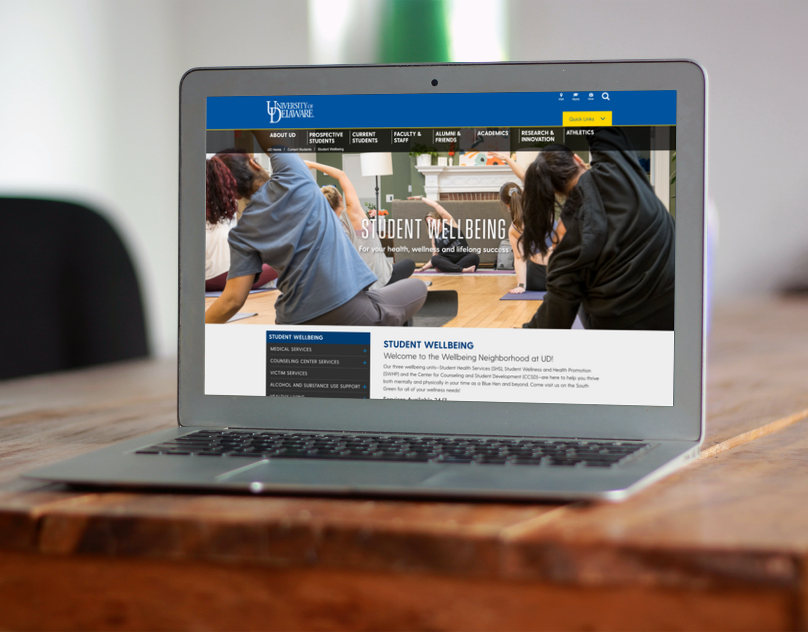 The Student Life Web and UX team took oversight of the UD Current Students page in February 2024, completely overhauling the layout and design, and rebranding it as "Blue Hen Life." The page encompasses Student Life as a broader concept, beyond the Divisional organization. It includes resources and services from across campus to help students succeed in their co-curricular life as a University of Delaware student.