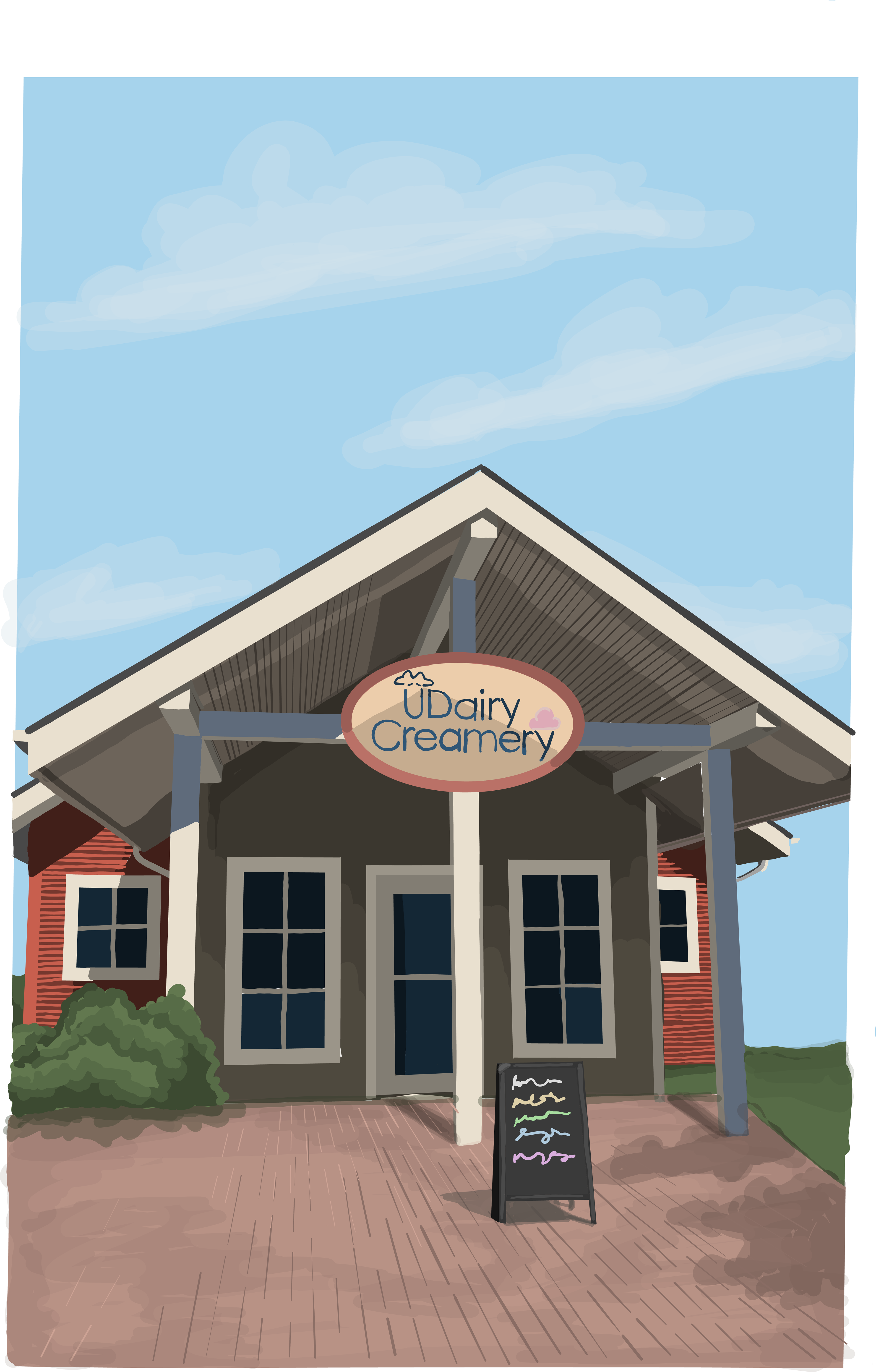 The Student Exhibition space in Perkins Student Center is a display space that features artwork. In honor of the University of Delaware's beautiful landscapes and iconic scenes, (such as Mentor's Circle, UDairy, Memorial Hall, and more), these illustrations bring our campus to life as they sit on display in the Student Exhibition.